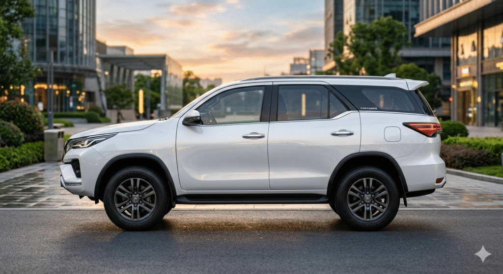 The side profile could include larger alloy wheels, muscular body lines and black cladding, maintaining the rugged SUV character that Fortuner is famous for.